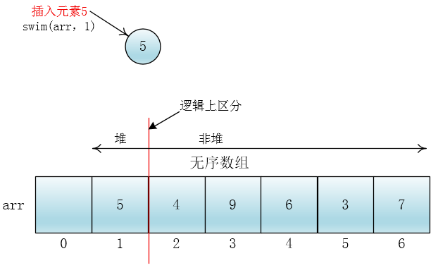 我可以遍历数组中的每个元素,给一个空堆不断插入元素,直到插完所有元素,这样就可以构造一个堆了