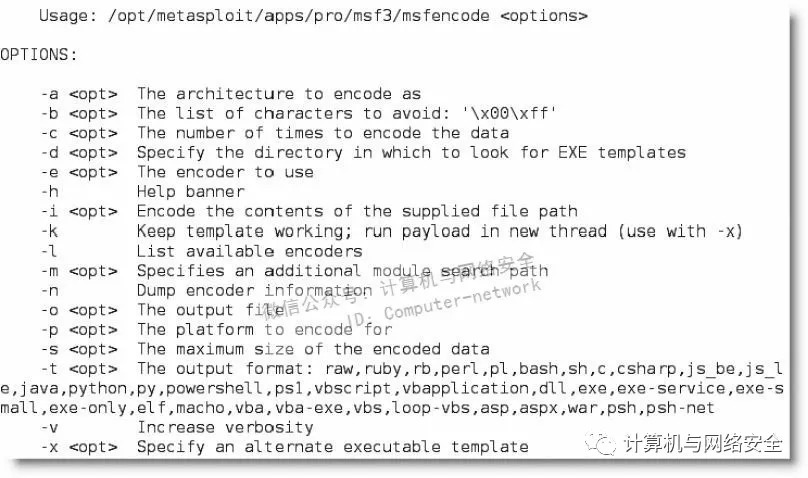 Metasploit使用近30种不同的编码器,默认情况下,如果没有指定编码器,Metasploit会选择最合适的编码器。