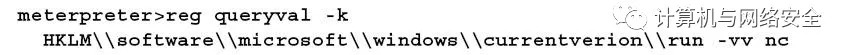 例如,如果目标操作系统是Windows 7,使用meterpreter获得一个目标系统交互命令shell,之后输入以下命令行来修改注册表:
