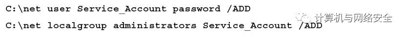 创建一个账户,例如Service_Account,该账户看起来是正常系统功能的一部分,使用如下命令: