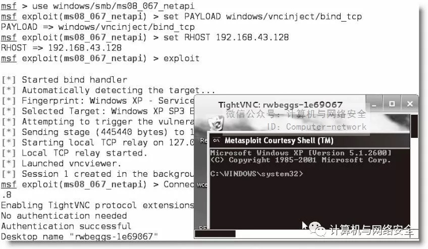 Metasploit能够利用VNCINJECT模块,把VNC直接注入到被攻击系统中。