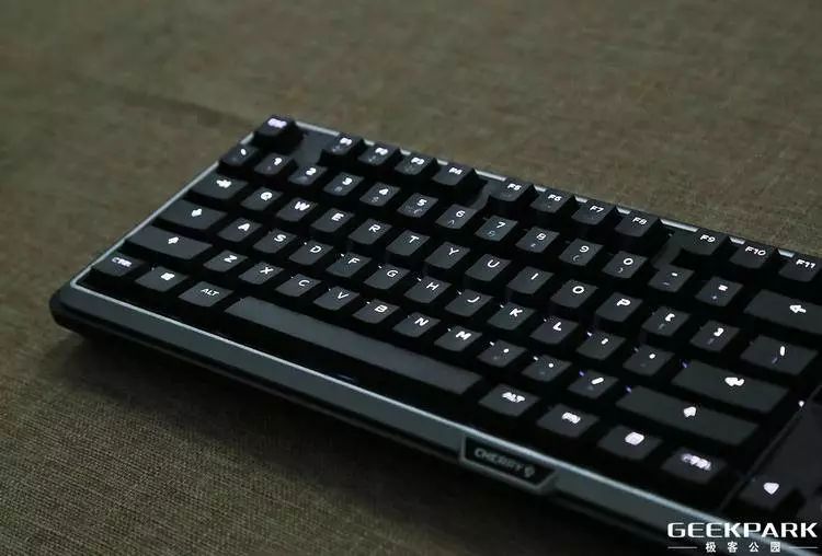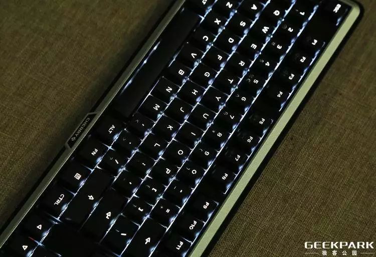 由于其采用了 PBT 双色注塑键帽,点亮之后灯光的均匀性表现令人满意。