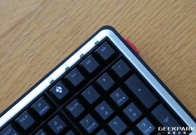 细节处理部分,MX Board 5.0 键盘区外围做了一圈磨砂铝合金装饰条来作为点缀。