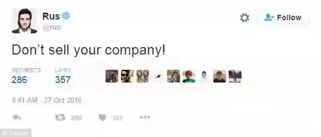 Yusupov 后来发过一条推文:不要卖掉你的公司!