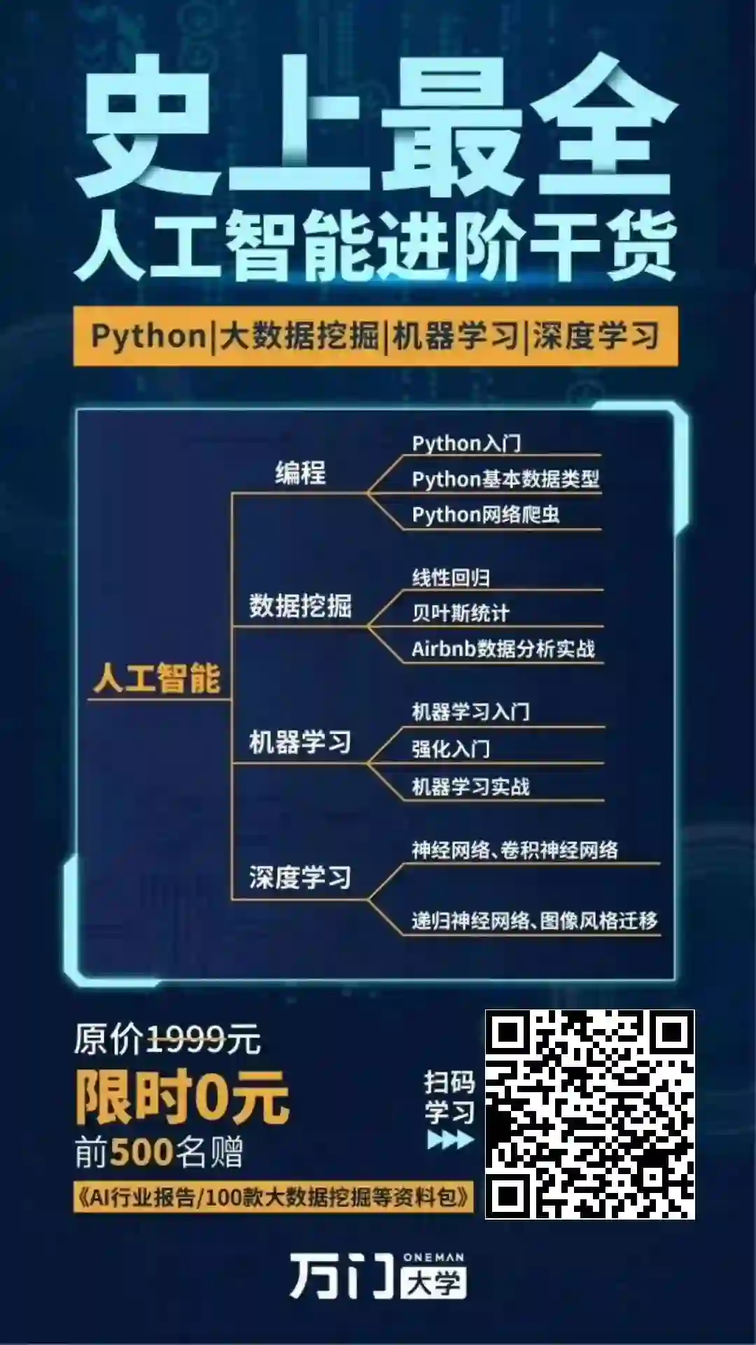 如果你想投入 AI 的怀抱,但却苦于不知如何下手。而当你准备自学机器学习和深度学习时,又被外面那些贵的要命的培训课程吓得不行时,你还可以选择成为本次万门大学人工智能专业的学员。