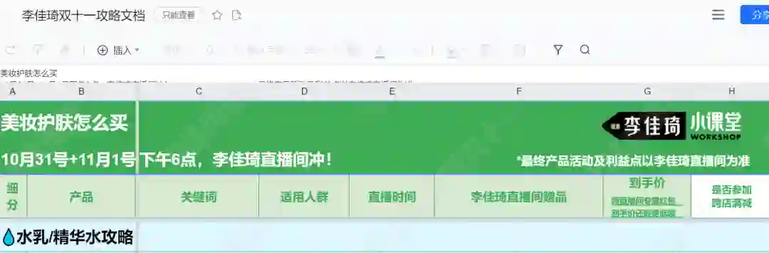 复杂的表格罗列出了时间脉络、商品信息、购买方法。拍下立减还是领券下单?加上赠品相当于打几折?到手价究竟是多少?红包怎么领,怎么花?这些问题都可以在表格中找到答案。