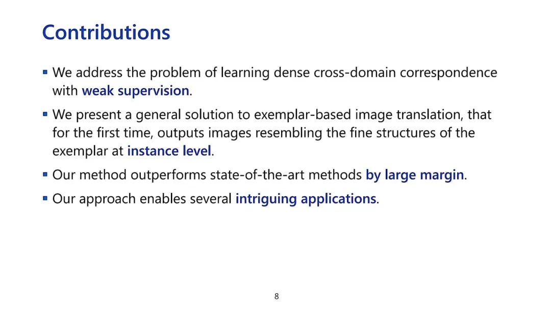 题目:Cross-domain Correspondence Learning for Exemplar-based Image Translation