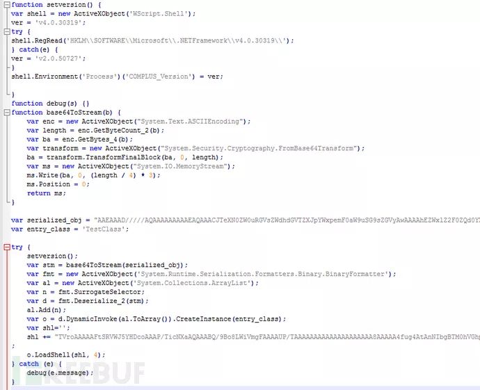 loader的pdb为:E:\priv\framework\code\tools\exe2js\loader\obj\Release\loader.pdb,其功能是申请内存,解密加载执行playload: