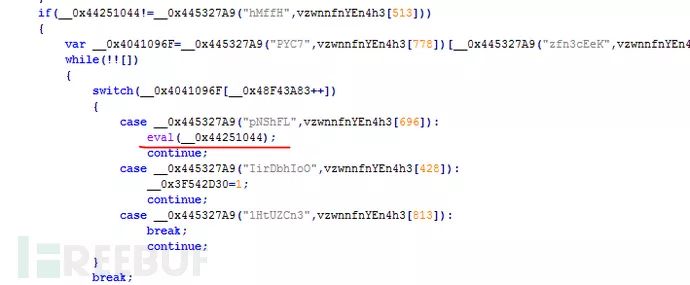 通过一系列解密后最终通过eval执行解密后的脚本: