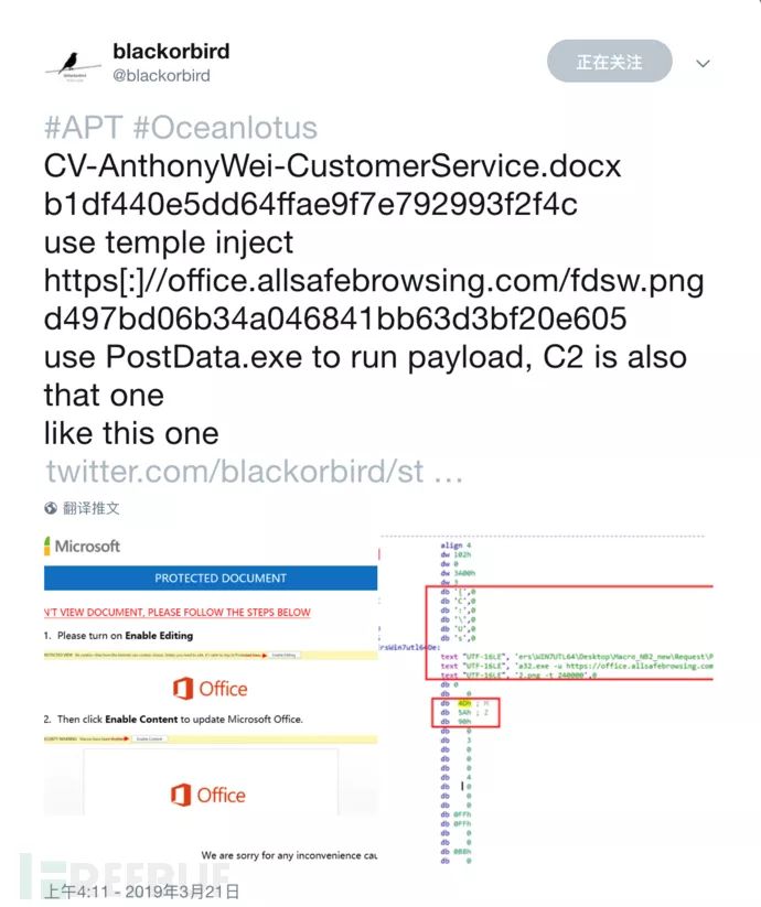 其他的技术细节同文章同之前御见发布的海莲花的分析文章(见附录)