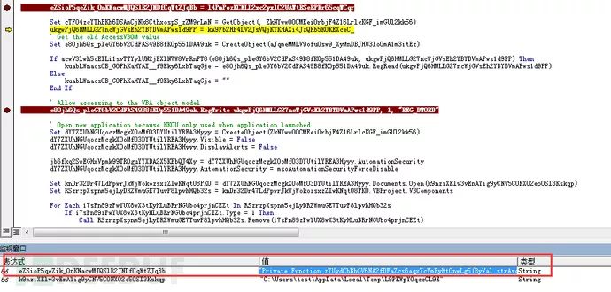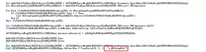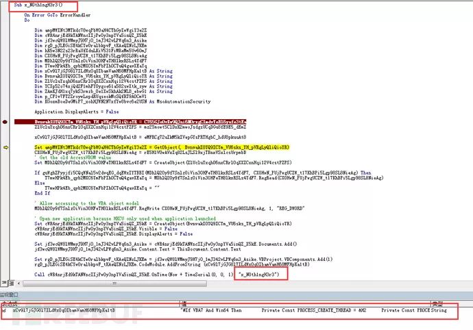 x_N0th1ngH3r3函数同样是解密出一段新VBA宏,同样调用新VBA宏的x_N0th1ngH3r3函数: