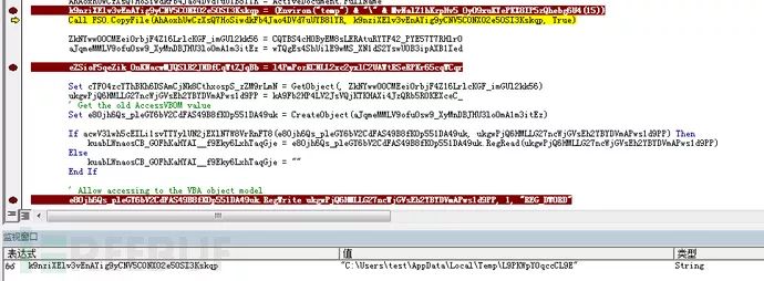 执行宏后,首先会复制原始文档到%temp%下,命名为随机名文件: