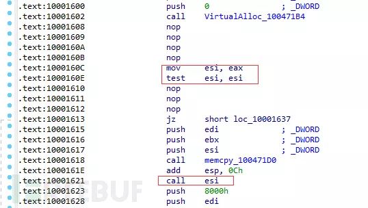 下载的木马是一个直接可当作代码执行的shellcode,下载后直接在内存中执行: