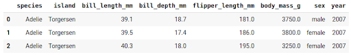 上图为 Palmer's Penguins 数据集中的三个示例