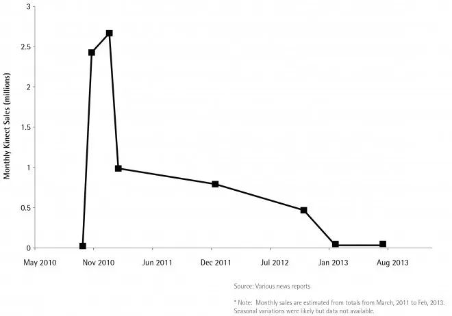 而微软的Kinect同样出现了类似的情况,在经历初期的一番爆炸式的销量增长后,就陷入了无可挽回的颓势中。值得一提的是,在Xbox One上微软还想通过捆绑Kinect来扩大受众,提高销量,而付出的代价就是销量远不及同期稳扎稳打的PS4。