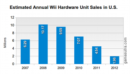 像是任天堂的Wii,由于本身机能薄弱,不支持720P和1080P高清视频输出,在其生涯中期(2009-2010)就出现了部分地区销量快速下滑的现象,要知道许多游戏主机在这个时间段还能通过降价促销等手段来提振一番销量呢。