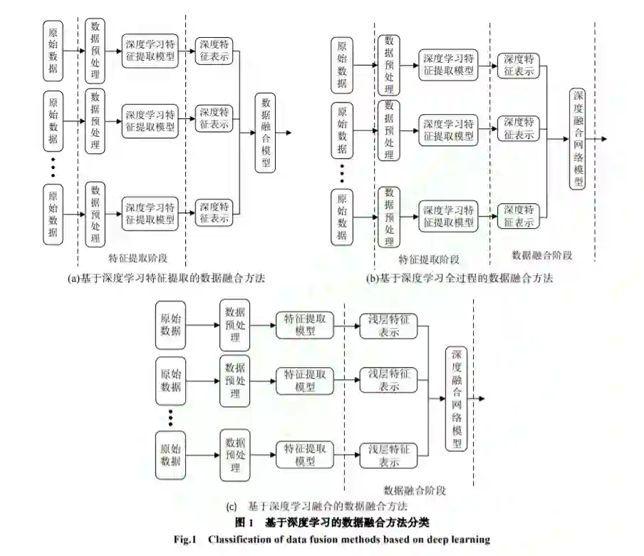 数据融合是最大程度发挥大数据价值的关键,深度学习是挖掘数据深层特征信息的技术利器,基于深度学习的数据融合能够充分挖掘大数据潜在价值,从新的深度和广度拓展对世界的探索和认识。本文综述了近几年基于深度学习的数据融合方法的相关文献,以此了解深度学习在数据融合中应用所具有的优势。首先,分类阐述常见的数据融合方法,同时指出这些方法的优点和不足;接着,从基于深度学习特征提取的数据融合方法、基于深度学习融合的数据融合方法、基于深度学习全过程的数据融合方法三个方面对基于深度学习的数据融合方法进行分析,并做了对比研究与总结;最后,总结全文,讨论了深度学习在数据融合中应用的难点和未来需要进一步研究的问题。