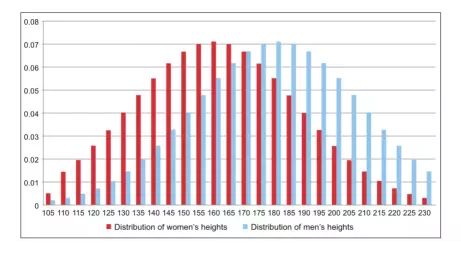 回到之前的例子,女性在身高分布上通常要比男性矮,画成图的话如图3。