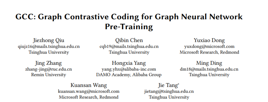图表示学习已经成为解决现实问题的一种强大的技术。节点分类、相似度搜索、图分类和链接预测等各种下游图学习任务都受益于它的最新发展。然而,现有的图表示学习技术侧重于特定领域的问题,并为每个图训练专用的模型,这些模型通常不能转移到域外数据。受最近自然语言处理和计算机视觉的预训练进展的启发,我们设计了图对比编码(GCC)——一种无监督图表示学习框架——来捕获跨多个网络的通用网络拓扑属性。我们将GCC的预训练任务设计为网络中或跨网络的子图级实例识别,并利用对比学习来授权模型学习内在的和可转移的结构表示。我们对三个图学习任务和十个图数据集进行了广泛的实验。结果表明,在一组不同的数据集上进行预训练的GCC可以取得与任务相关的从零开始训练的GCC具有竞争力或更好的性能。这表明,预训练和微调范式为图表示学习提供了巨大的潜力。