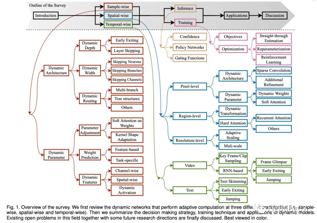 3)时序动态模型,对视频和文本等序列数据沿时间维度进行自适应推理。系统地回顾了动态网络的重要研究问题,如结构设计、决策方案、优化技术和应用。