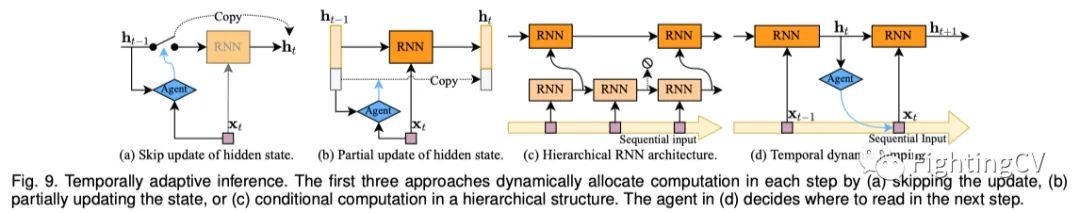 除了空间维度外,还可以沿序列数据的时间维度执行自适应计算,例如文本和视频。一般来说,可以通过在不重要的时间位置动态分配较少/无计算的输入来提高网络效率。