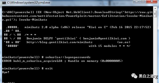1)通过bypass UAC我们可以通过普通的cmd抓到管理员密码。