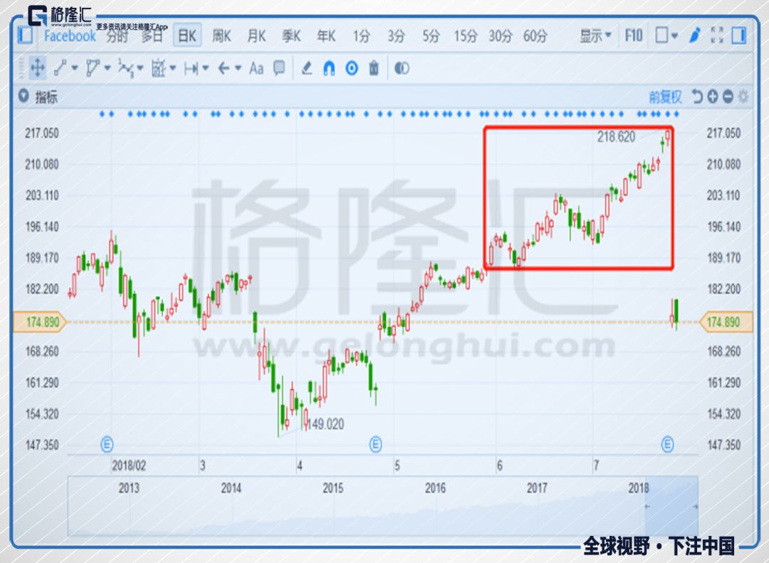 如果我们站在脸书股价的最高峰去注视股价最低谷,应该油然而生这样的想法,这都是同等智商的资金推动而成的。资本会把最高峰时的自己叫做最低谷时期自己的迭代,像是自我安慰地说自己在最低谷进行“基层锻炼”。