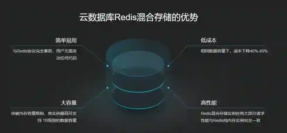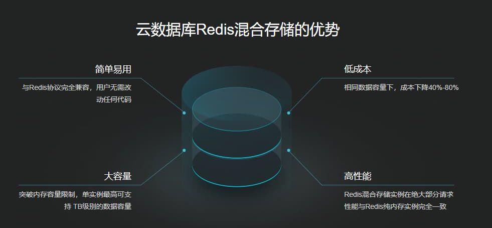 Redis混合存储实例是阿里云自主研发的完全兼容Redis协议和特性的混合存储产品。通过将部分冷数据存储到磁盘,在保证绝大部分访问性能不下降的基础上,大大降低了用户成本并突破了内存对Redis单实例数据量的限制。