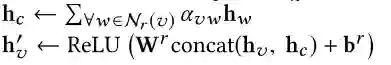3)将h_v与h_c的串联向量送入全连接层,并使用relu函数激活输出以生成更新的节点嵌入h'_v: