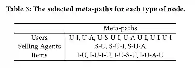 我们还为每种类型的节点选择了不同的元路径,如表3所示: