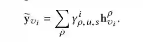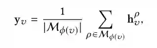 商品的混合嵌入~y_{v_i}被计算为从不同元路径定义的感受野导出的嵌入上的注意系数加权和。
