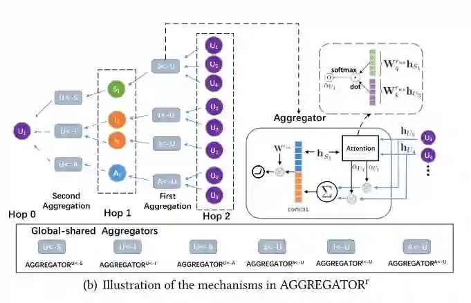 【导读】近年来,智能体发起(agent-initiated)的社交电子商务模式取得了惊人的成功,鼓励用户成为销售智能体并通过他们的社会关系来推销物品。这种社交电子商务中的复杂交互可以表述为异构信息网络(HIN),其中三种类型的节点(用户,销售智能体和项目)之间存在多种关系。学习高质量的节点嵌入是关键。在本文中我们提出了关系感知的协同注意GCN模型-RecoGCN,有效的聚合异构信息网络(HIN)中的异构特征。它弥补了当前GCN在使用关系感知聚合器建模异构关系的限制,并且利用语义感知元路径(meta-paths)去为每一个节点绘制出简单并且相关的感受野,并且使用一个协同注意力机制,去为不同的元路径动态的分配注意力权重。在真实数据集上的大量实验表明,RecoGCN能够学习HIN中有意义的节点嵌入,并且在推荐任务中始终优于基线方法。