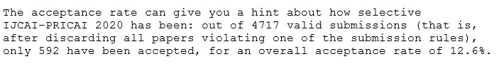 IJCAI 2020 经历了灭霸式拒稿,无反馈评审意见,终于还是迎来了开奖。12.6% 的 main track 接受率,仅仅有592篇中奖,号称年度录取率最低的CCF A类会议。