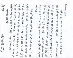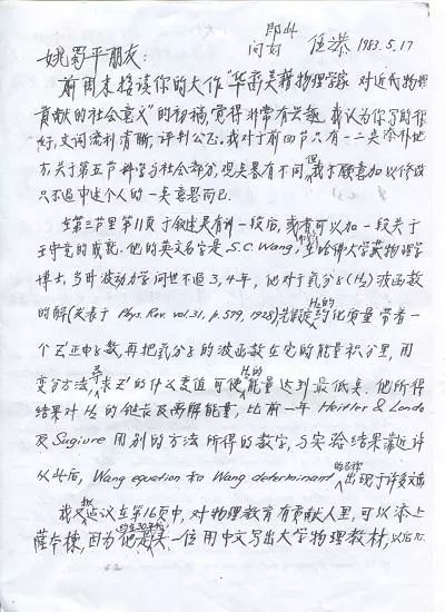 吴健雄——读了您的大作,非常钦佩和感动。安置好以后,可以到各处探视并与有关的物理学家会面谈谈,欢迎你来纽约这一带,参观考察;