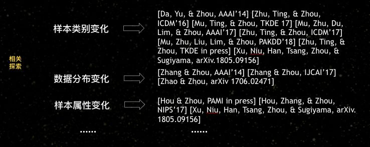 从学术上来说,我们组里对这件事关注得比较早,有一些探索,前面Dietterich教授的报告也提到了我们的一点工作。这张片子里面是我们最近关于应付各种变化的一些探索性工作。