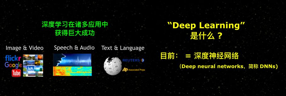 现在深度学习在图像、视频、语音这些数字信号建模任务当中取得了巨大的成功。如果我们问一问大家,“深度学习”是什么?我想从绝大多数人那里得到的答案都会是: