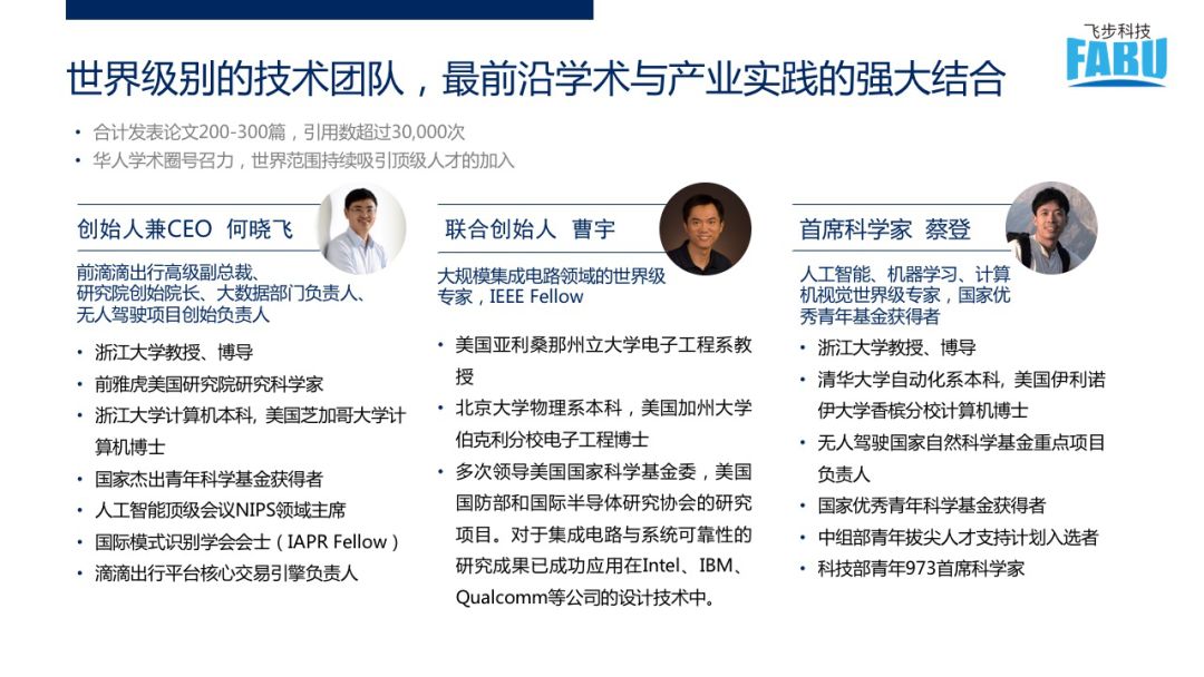 据何晓飞透露,飞步科技目前有几十个人,在杭州和美国都有办公室,美国团队由曹宇领导。