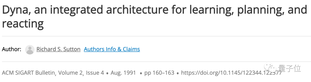 在LeCun的论文中,关于这部分的引用是来自论文“Dyna, an integrated architecture for learning, planning, and reacting”,发表于1991年8月。