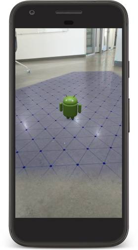 随着设备的移动,应用会自动侦测到水平表面,并绘制出棱形网格。点击网格即可在平面上放置 Android 机器人。