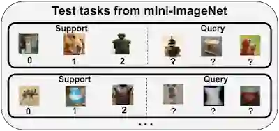 具体而言,在小样本分类中,训练集包含的类与测试时使用的类完全没有交集。因此,训练的目的是学习柔性模型,以便仅使用少量样本便可将其用途转变为分类新类。最终目标是在针对一些 测试任务 进行的测试时评估表现良好,每种测试任务都会在已提出的 测试集 中展现先前未出现的类之间存在的分类问题。每个测试任务包含一个由若干带标签图像组成的 支持集(模型可通过这些图像学习新的类), 以及一个完全无交集的 样本查询集(模型随后需要对该集进行分类)。