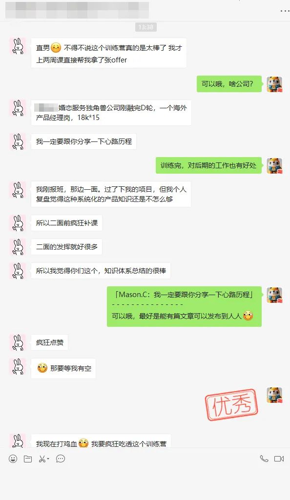 才上课2周就拿到offer!薪资18k*15,整整比我上一份工作翻了一倍!超乎我的想象……参加学习不到2周时间,就成功拿到27W的产品经理offer(刚D轮融资完的某互联网公司),真的是“极速拿offer”了。