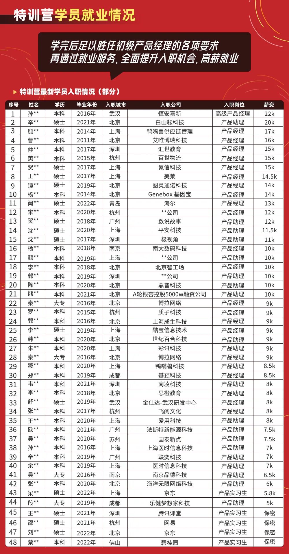 Sam同学亲身为大家证明——根据实际境况明确转岗/入行目标→找到对的学习入行方式,最终转岗产品,薪资翻倍绝不是件难事。就在上个月,特训营还帮助了其他来自不同行业的0经验、0基础新人拿到产品offer: