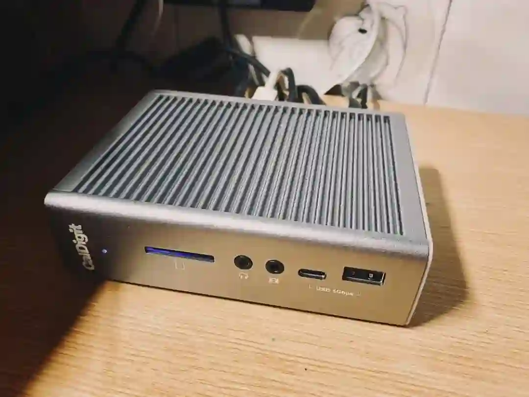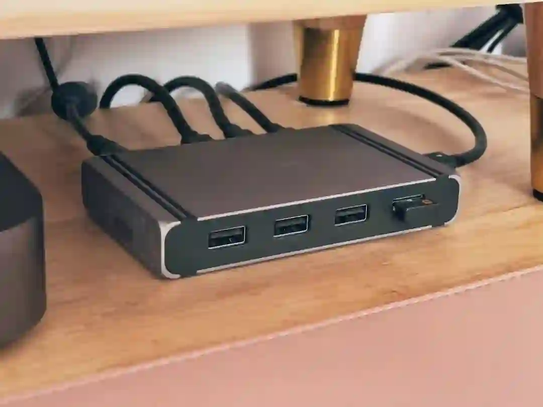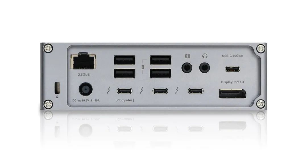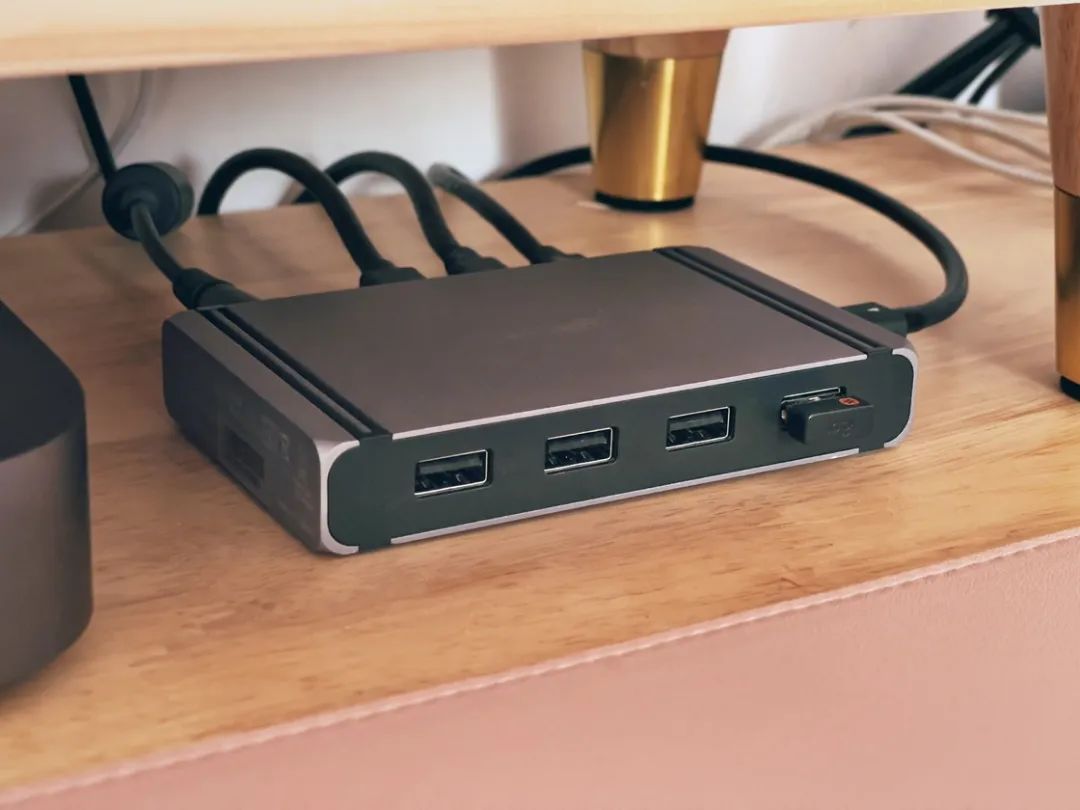雷电 4 Dock:提供了类型丰富的各种接口,但上行雷电接口都放在了前面,意味着要么从桌上绕一圈,要么倒过来用。