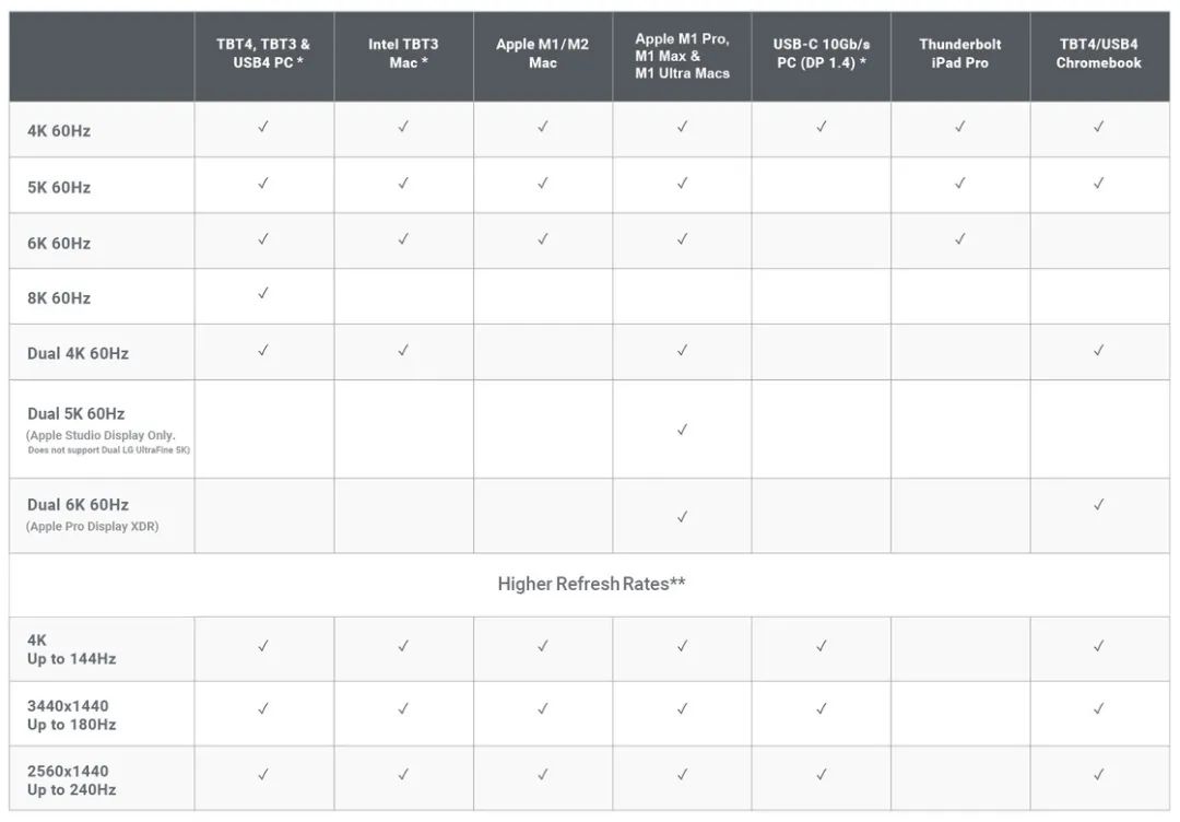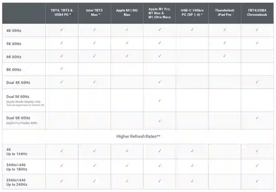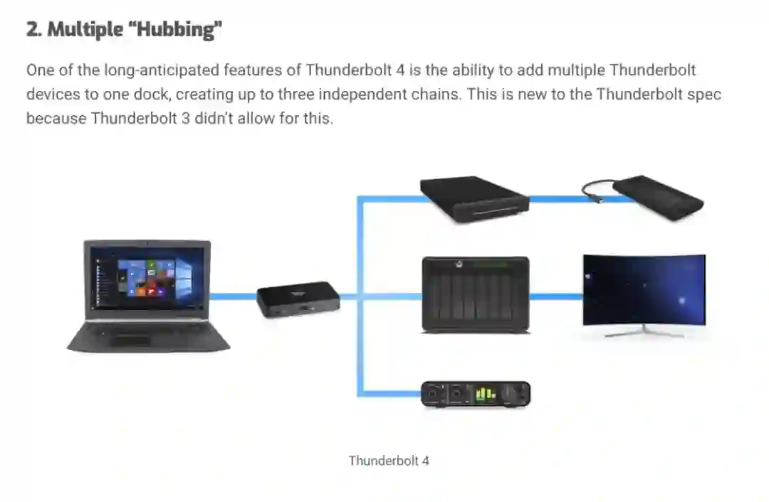 雷电 4 Hub:主要是提供一个上行雷电 4 和三个下行雷电 4,额外提供 1 到 4 个 USB-A 接口,无其它接口;
