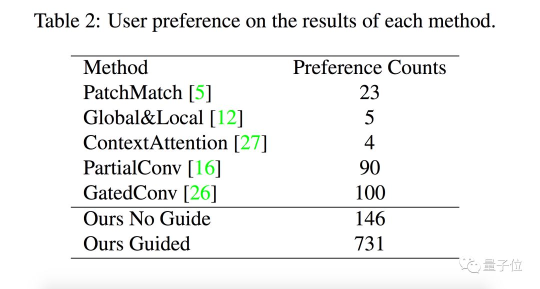 总共获得1099张选票,877票都投给了前景感知图像修复算法,得票率将近80%。