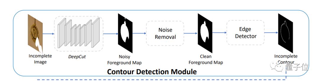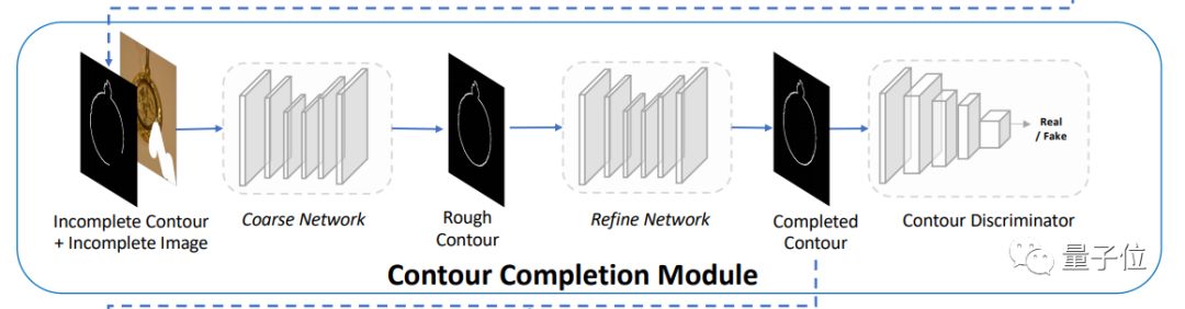 然后轮廓补全模块登场,来预测完整的图像前景轮廓应该是什么样子。