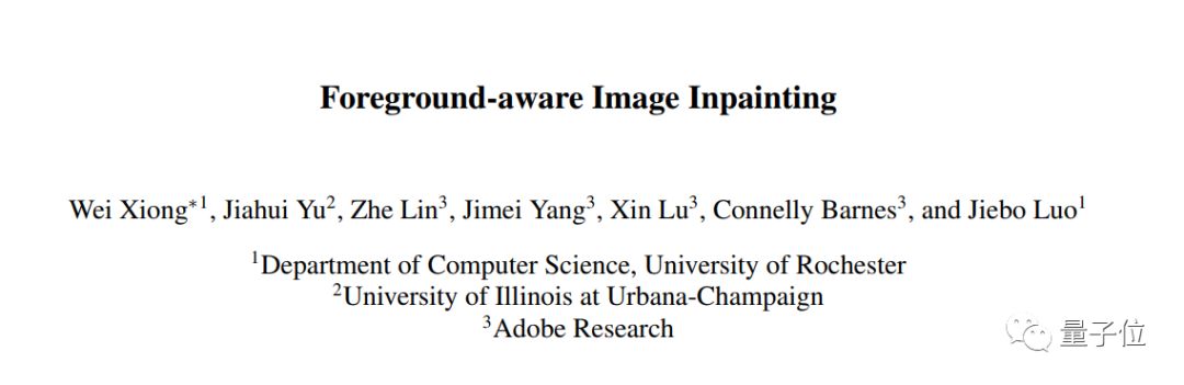 这位“前”老师,是新年伊始刚刚发在Arxiv上的最新算法,论文就叫《Foreground-aware Image Inpainting》,研究者们来自罗彻斯特大学、伊利诺伊大学香槟分校和Adobe研究院,其中一作是罗彻斯特大学计算机系学生,完成这项研究时正在Adobe实习。