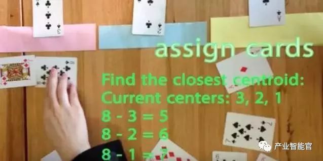 先要将一组数据,分为三类,粉色数值大,黄色数值小 。最开始先初始化,这里面选了最简单的 3,2,1 作为各类的初始值 。剩下的数据里,每个都与三个初始值计算距离,然后归类到离它最近的初始值所在类别。